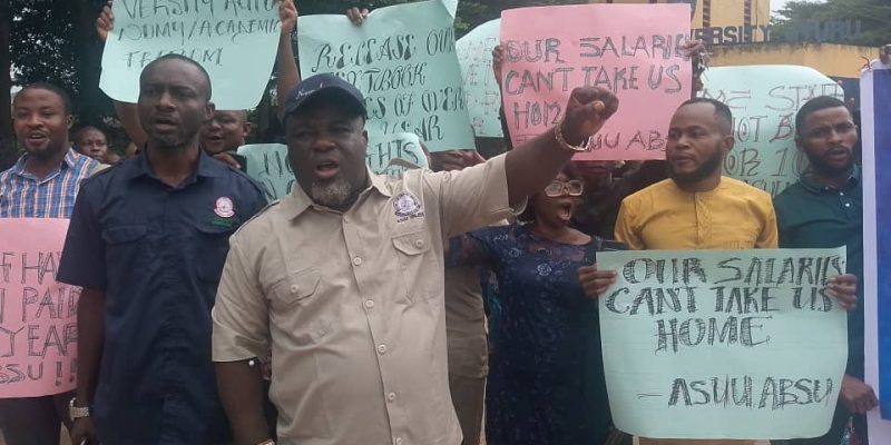 The Academic Staff Union of Universities, ASUU, Abia State University Uturu branch on Tuesday joined other ASUU branches in the 36 states of the federation to protest what they called government’s insensitivity to the welfare of Varsity lecturers.