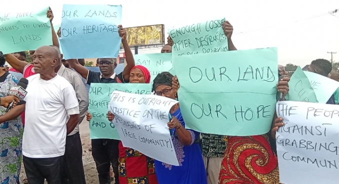 The demonstration ended peacefully, with the people vowing to continue their agitation until justice is served and their community land is preserved.