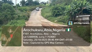 On Saturday, October 25, 2025, a team of journalists including Southeastposts reporter, embarked on a field verification of some of the projects listed by Kalu’s media office as completed or ongoing. The visit focused on confirming the state of work on the Umuahia–Bende–Arochukwu Road, which the Deputy Speaker had claimed was under reconstruction.
